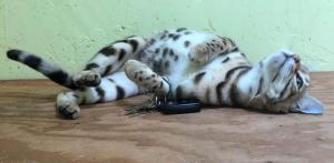 Chirashi’s first daughter. Fabulous female; she almost looks more like an ALC than her mother does, eyes, ears, head shape, pattern, coloring.