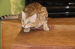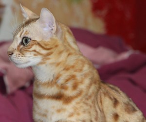 Boomer is a well contrasted Sorrel Bengal covered in a cluster rosetted pattern, good neck and body length. Three of his siblings won On Safari awards as Best Kittens and Breeders’ Choice awards.